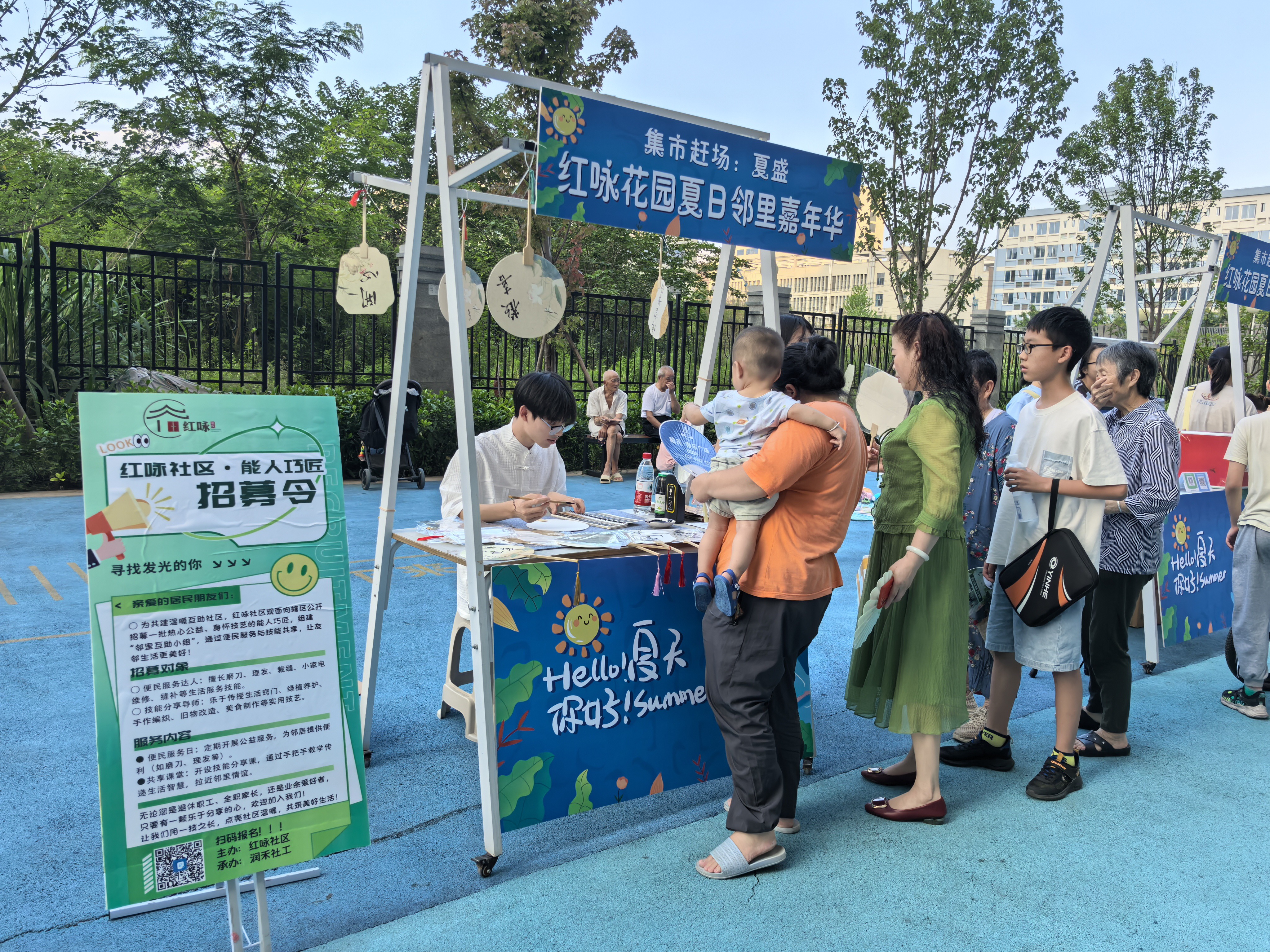 在“四季邻里日”赶场中,他们是融合的催化剂。去年的红咏花园夏日邻里嘉年华上,书法能人的纸扇题字,瞬间点燃了老少居民的参与热情,展示区秒变“全民书法课堂”。通过技能展示带动互动,一场小集市撬动了邻里间的“大融合”。