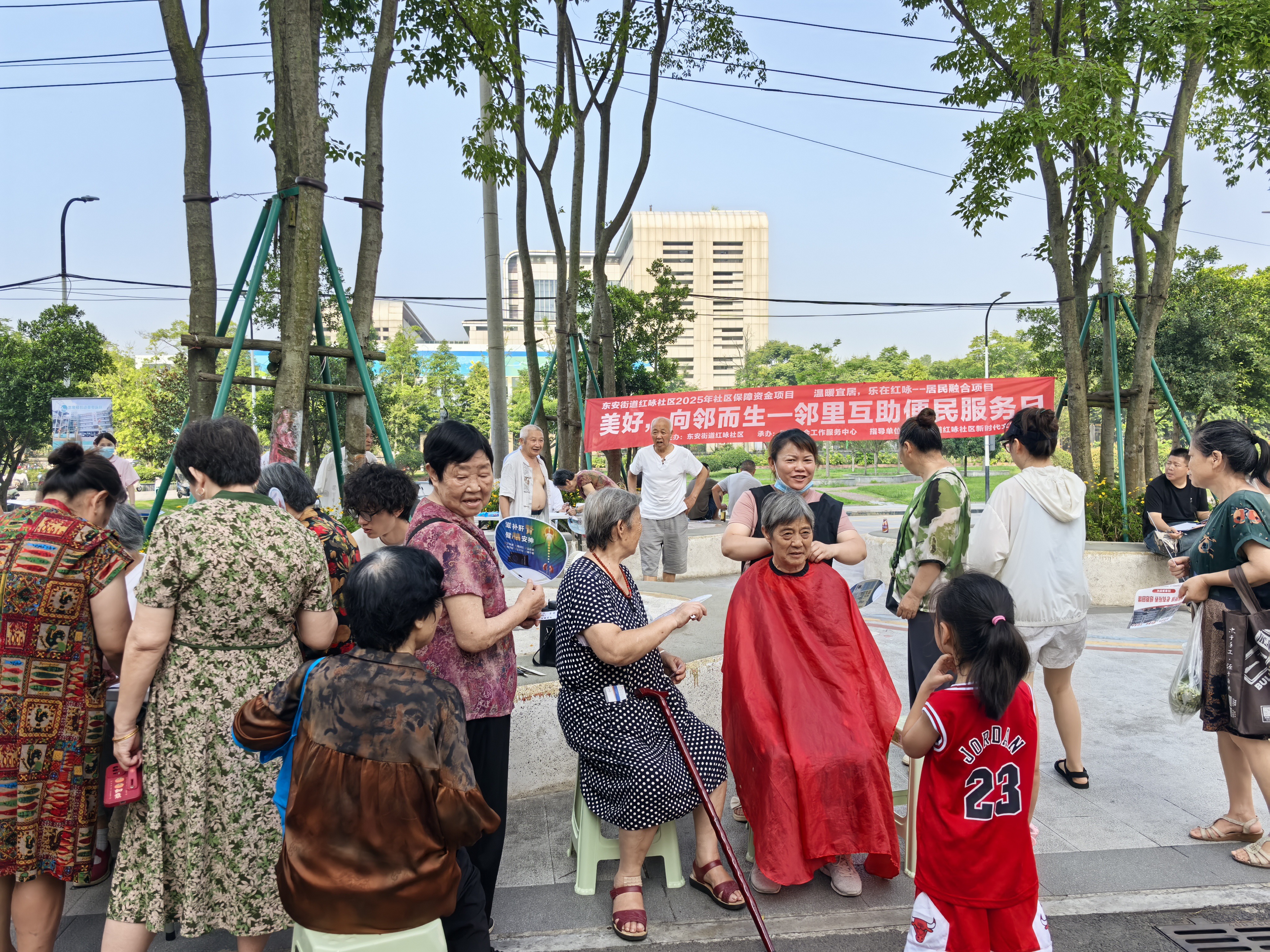 在“邻距离”便民服务日,他们是温暖的守护者。理发摊位优先服务“一老一小”,让居民在家门口就能享受免费理发;裁缝铺前的一针一线缝补的是衣物,更是邻里的情谊。搭配医疗机构的专业资源,他们让“家门口”的便民服务真正做到了居民的心坎上。