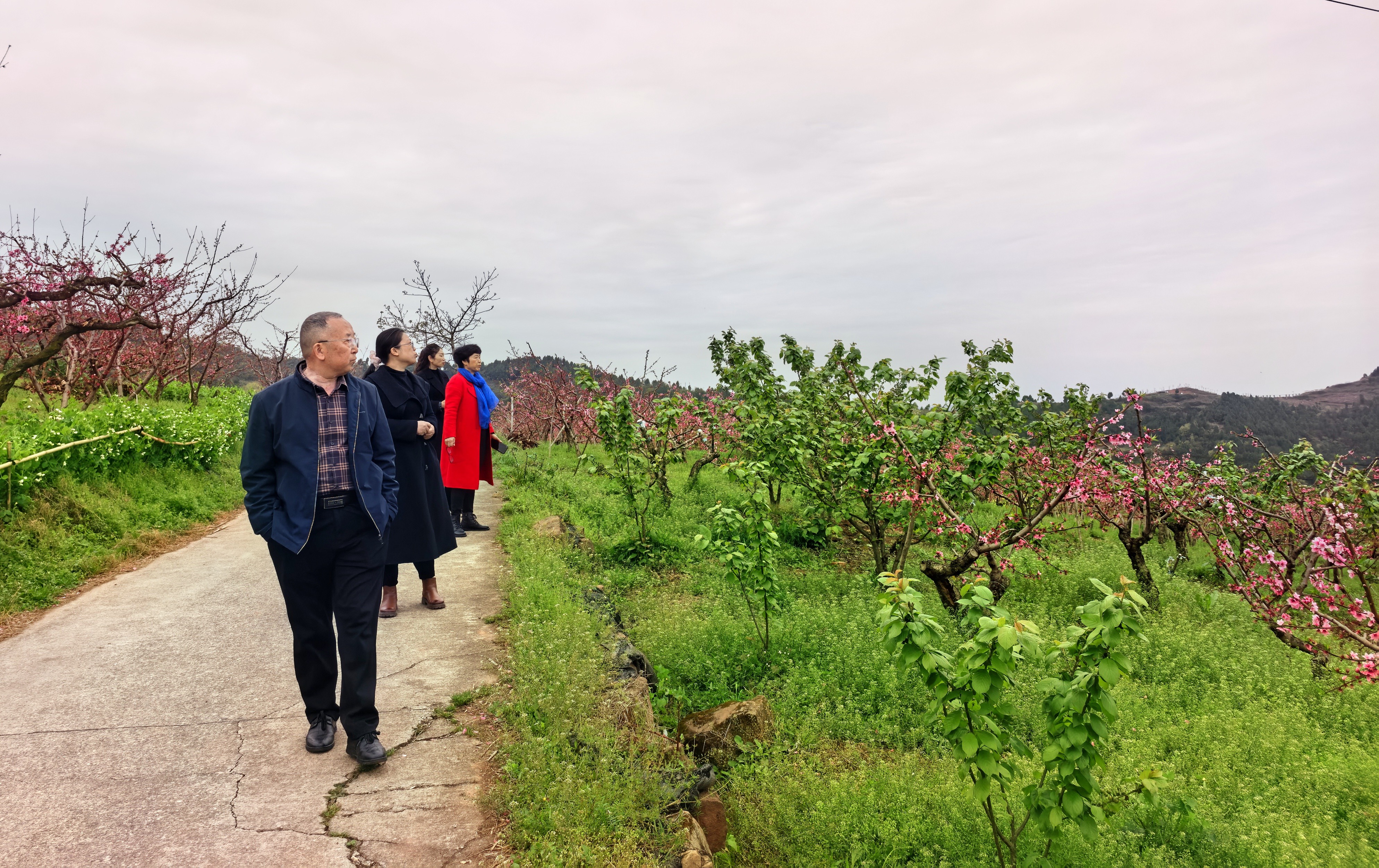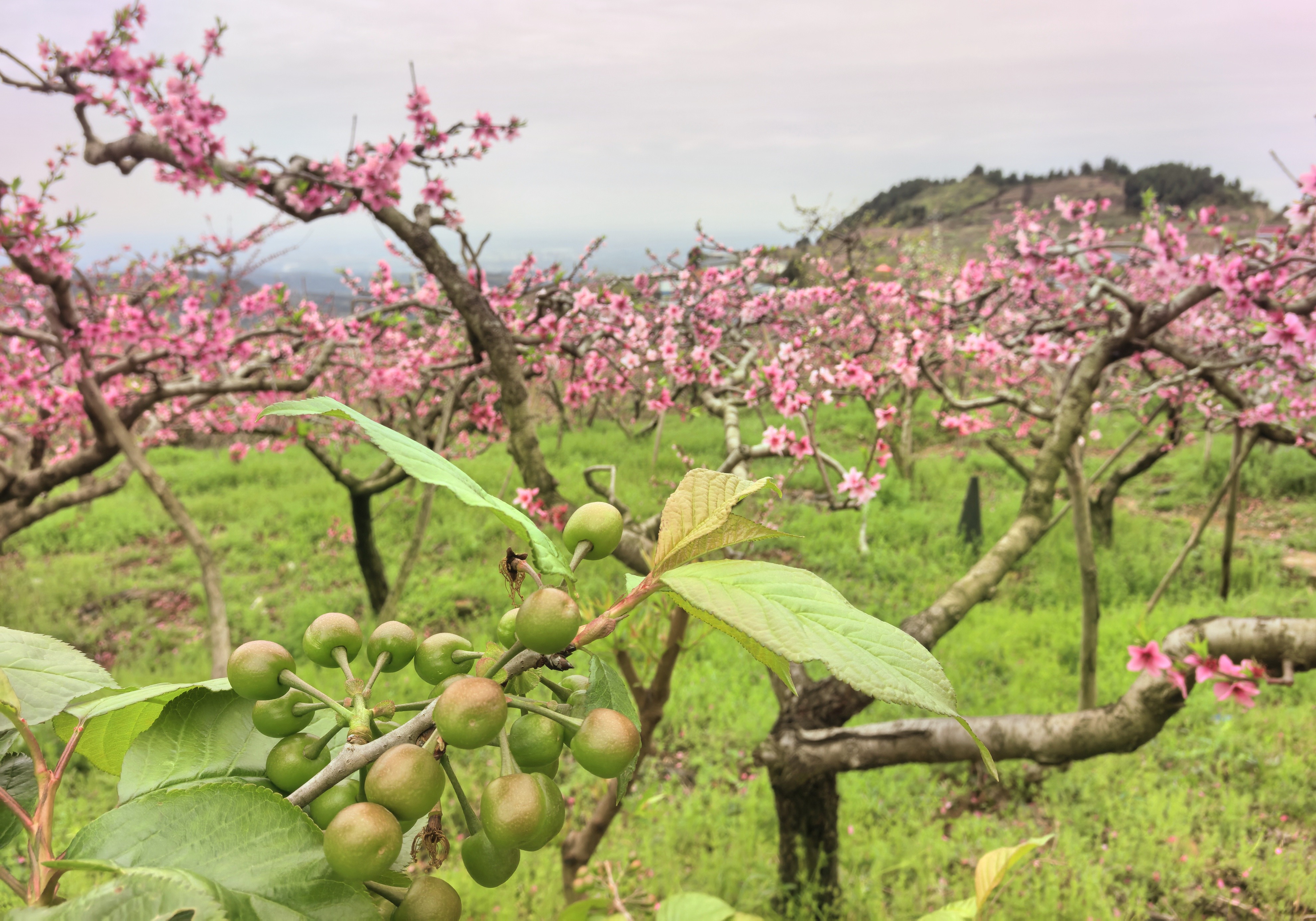 在山泉镇红花村7组,大片桃花正值绽放佳期,粉红的花海铺展开来,与一旁樱桃树上青涩的樱桃相映成趣。远处龙泉山和龙泉湖的自然风光相得益彰,构成一幅绝美的春景画卷。市民刘女士与家人专程来此赏花,她感慨道:“这里环境清静,花开得正好,真是不负春光。明年赏花,我们还要来这里。”