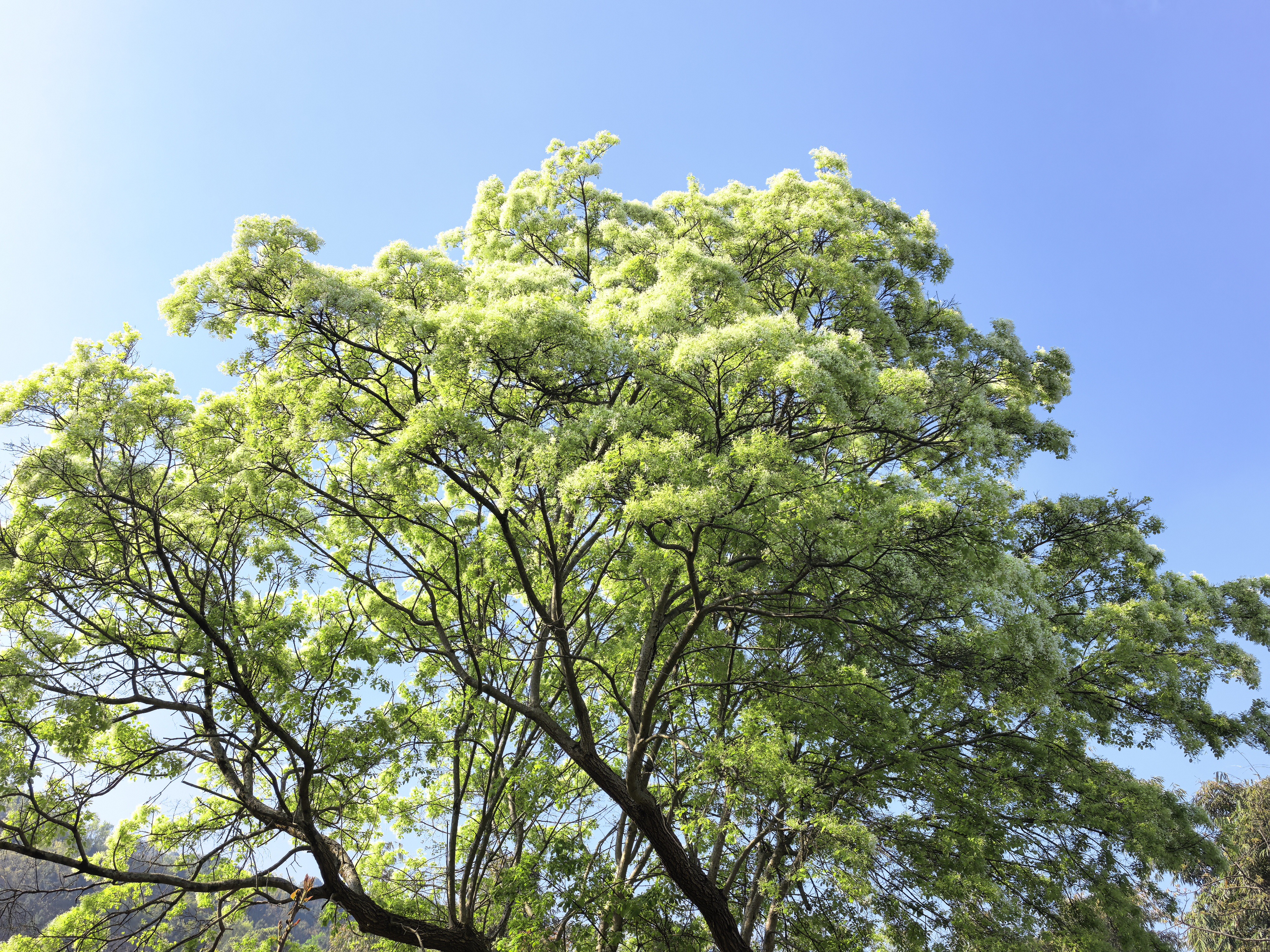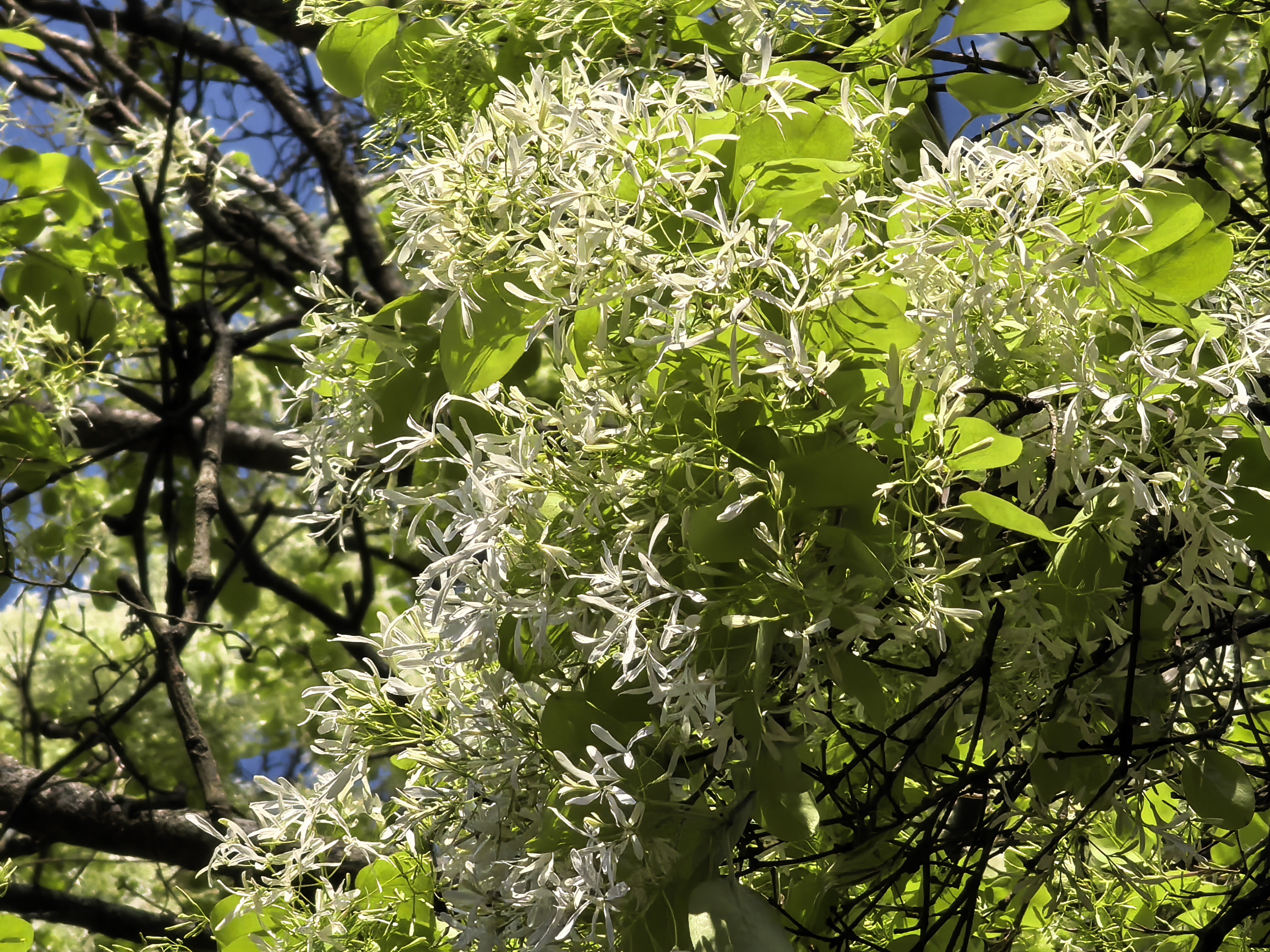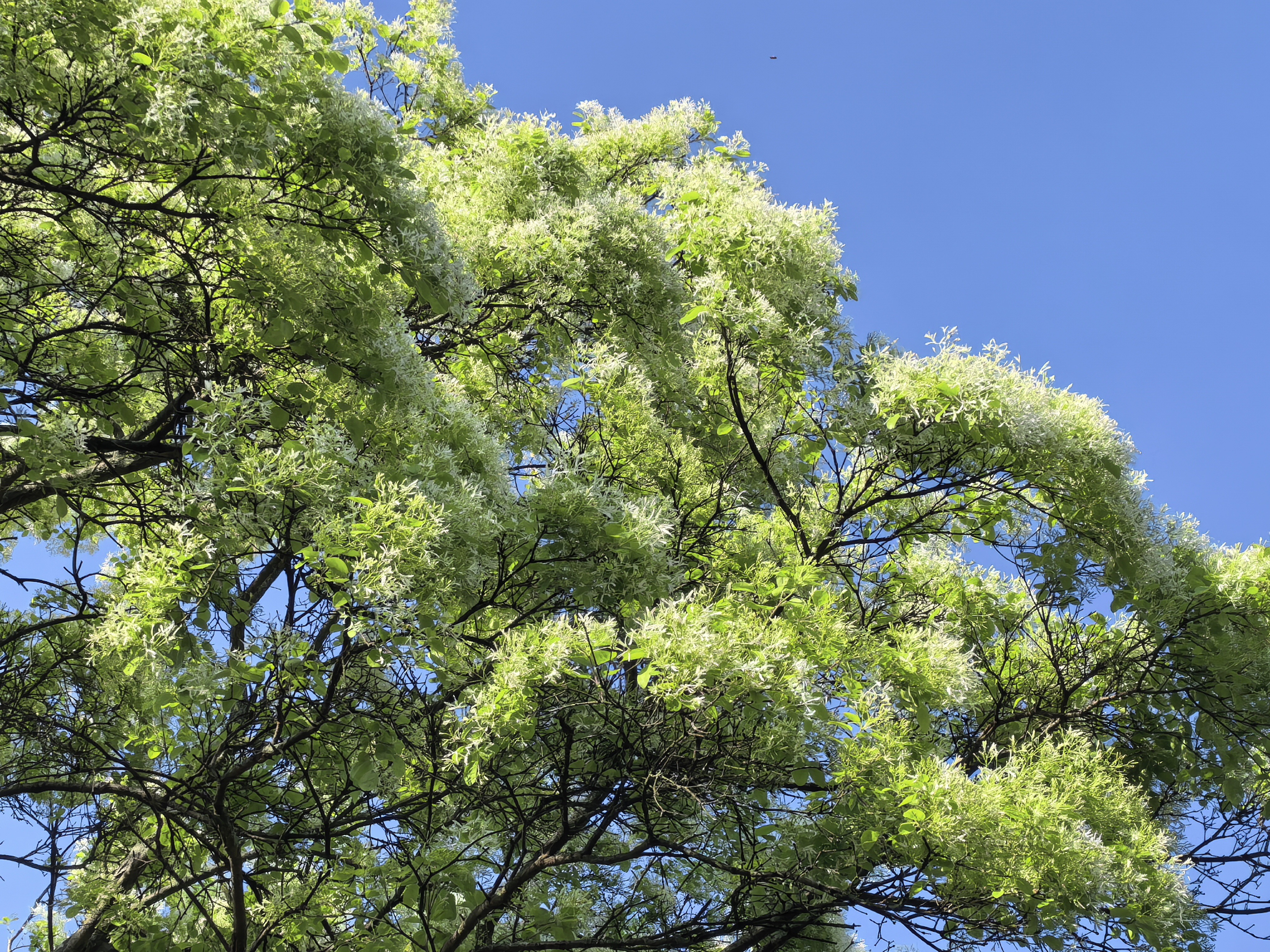流苏树,落叶乔木或灌木,树形高大舒展,枝叶繁茂。春日花开时,满树如覆霜盖雪,清丽可人。其花形纤细如丝,向上绽放,形似古代仕女衣襟上的流苏,故得此名。据调查,在龙泉山城市森林公园龙泉驿境内,仅有这一株流苏树,也因此被网友们唤作龙泉山“最孤独”的树。