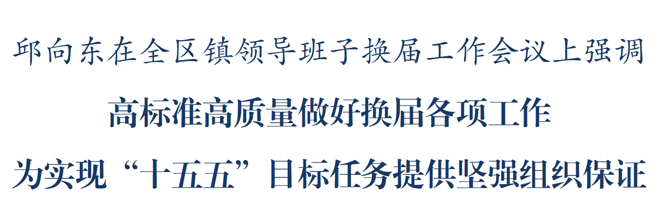 3月31日,全区镇领导班子换届工作会议召开。区委书记邱向东出席会议并讲话。他强调,要深入学习贯彻习近平总书记重要指示精神,全面落实党中央和省委、市委部署要求,精心研究谋划,认真组织实施,高标准高质量做好换届各项工作,为实现“十五五”目标任务提供坚强组织保证。