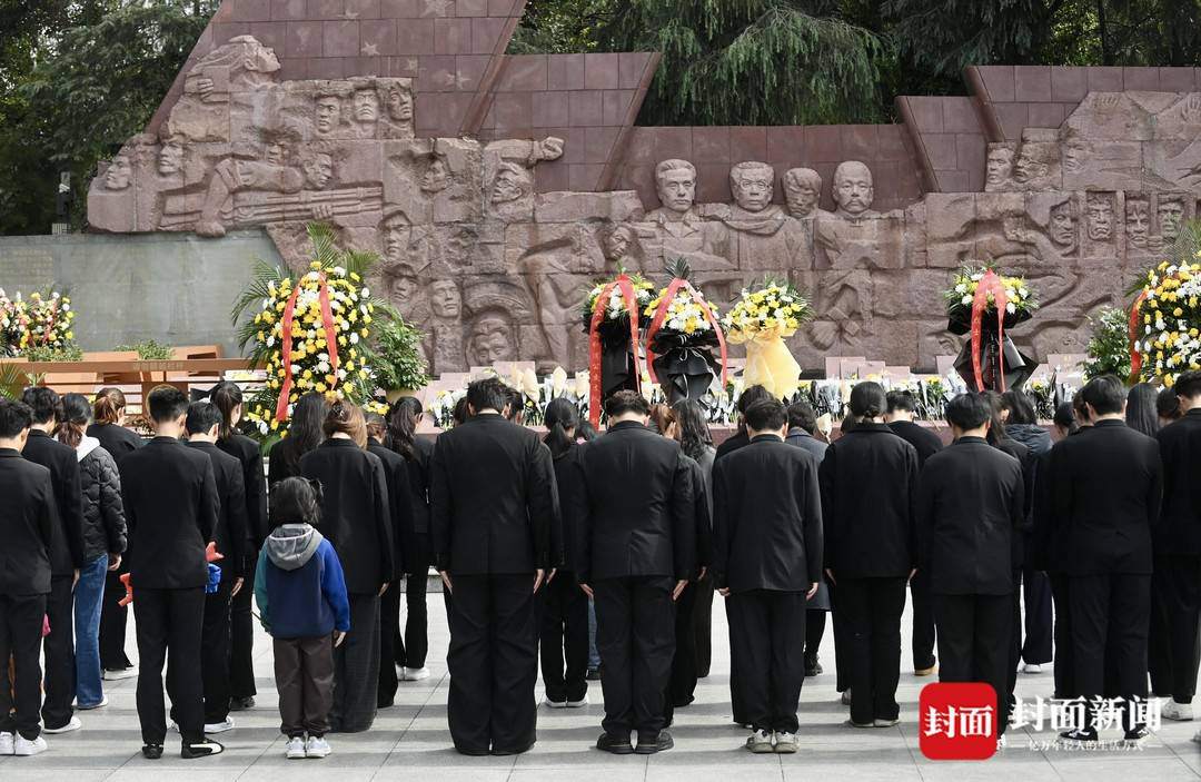 4月1日,清明节将至。成都文化公园十二桥烈士墓前,各界人士来到这里手捧鲜花缅怀先烈。赓续红色血脉,传承革命精神。