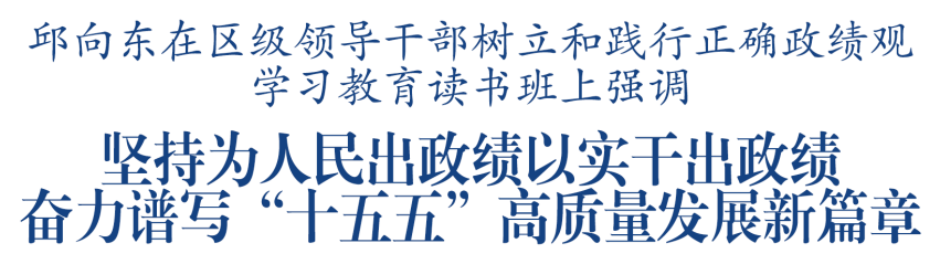 3月31日至4月2日,区级领导干部树立和践行正确政绩观学习教育读书班举行。区委书记邱向东作开班动员和结业讲话。他强调,要深入学习习近平总书记关于树立和践行正确政绩观的重要论述,认真落实党中央和省委、市委部署要求,引导全区党员干部进一步树立和践行正确政绩观,坚持为人民出政绩、以实干出政绩,奋力谱写“十五五”高质量发展新篇章。
