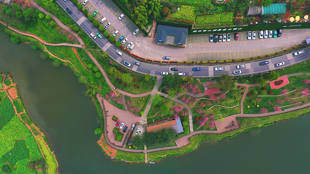 也是空中俯瞰飞龙湖时那一池春水的翡翠绿