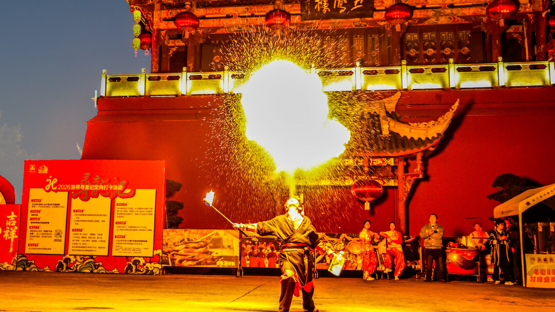 晚风里古镇那激动人心的火壶表演是红的
