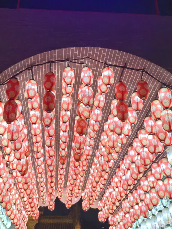 夜幕低垂时古镇亮起的灯笼是红的