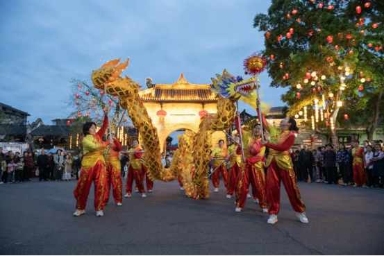 文旅消费市场百花齐放。洛带古镇推出“非遗‘洛’享夜”主题活动,夜幕下的五凤广场长龙翻腾、火壶飞旋,光影交织间游客纷纷举起手机记录。“白天逛老街村糖会、参与‘寻龙记’,晚上看表演,一天都不够玩!”来自重庆的游客王先生兴奋地说。清明期间,洛带古镇(含湿地公园)接待游客约18.60万人次,成为全区最热门的文旅地标。