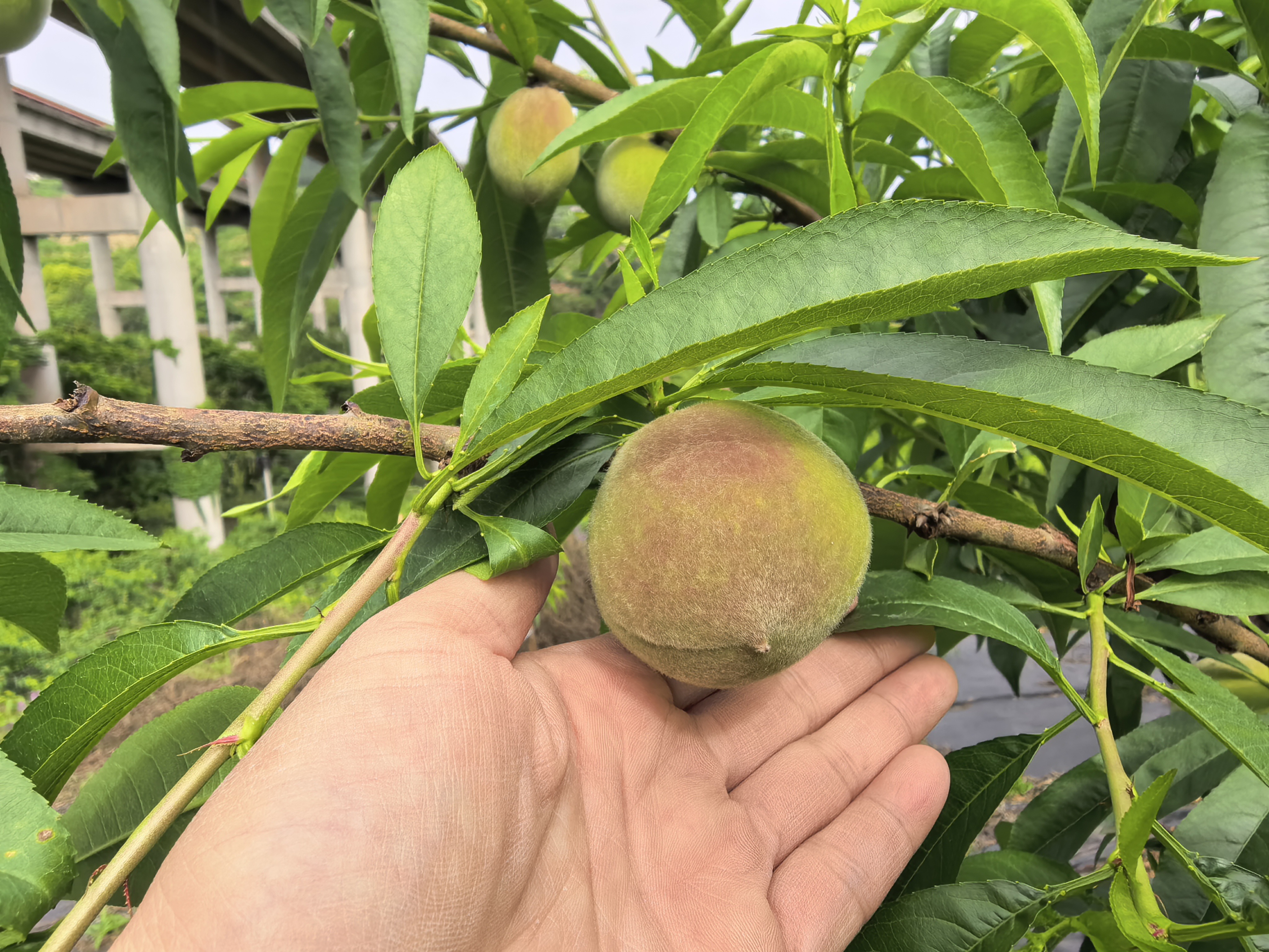 沿着龙泉山走访多个水蜜桃产区,记者均看到相同景象:桃树上的幼果均为青绿色,个头偏小,果农们正忙着施肥、防虫、疏果,全力保障水蜜桃品质,离红彤彤的水蜜桃上市,还有一段时间。