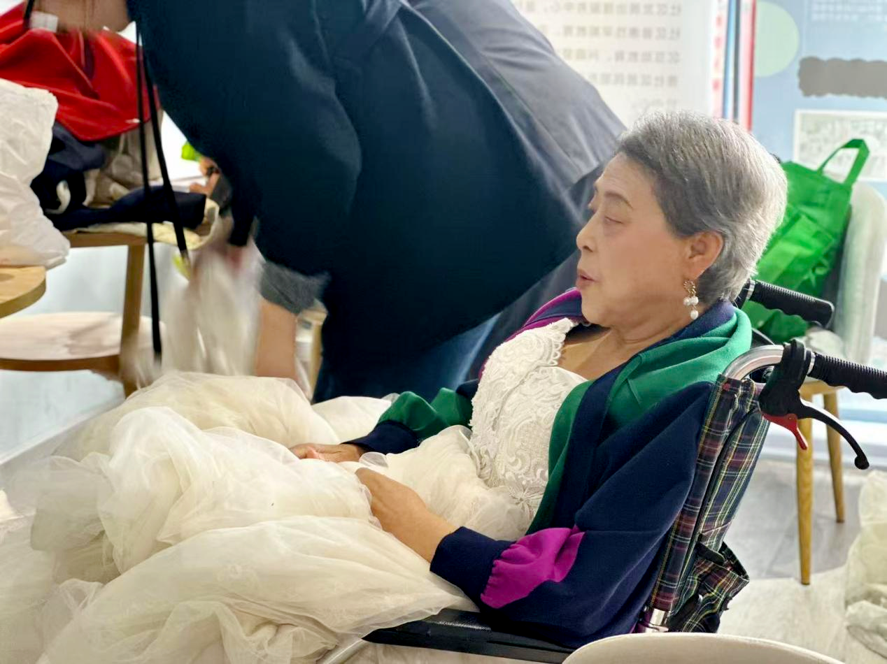 活动当日,志愿者早早备场,银发伉俪们依次签到,在专业化妆师打造下换上婚纱礼服。免费摄影服务帮老人们弥补了年轻时未拍婚纱照的遗憾,摄影师定格下他们紧握双手、深情对视的温馨瞬间,《五十年的情书》纪录片同步记录其爱情与家风。